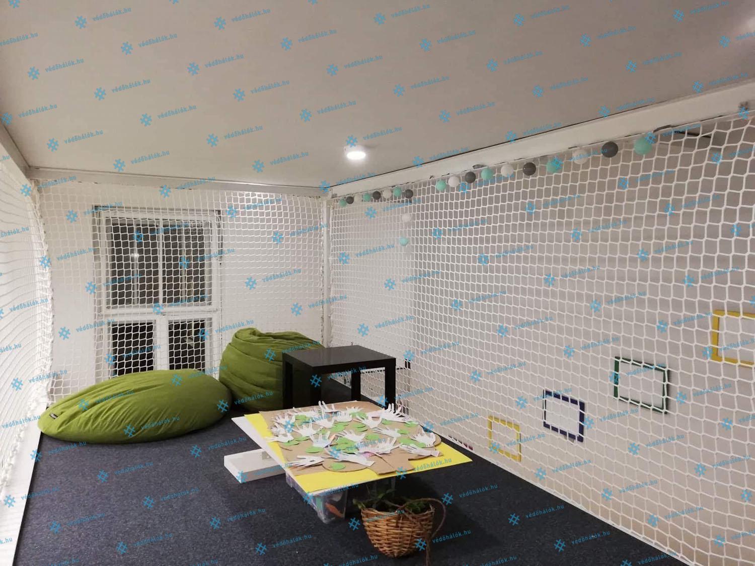 Ezen a helyszínen egy kreatív belsőépítészeti megoldást valósítottunk meg. Bár munkavédelmi hálókat szereltünk fel, de belsőépítészek tervei alapján, korlát helyett alkalmaztuk őket az osztálytermekben a galériákra, az eredmény így egy igen látványos, mégis biztonságos design egyben.