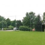 Az iskola területén belül a diszkoszvető háló mellett egy labdafogó hálót is telepítettünk, a futball pályáról kirúgott ill. kipattanó labdák megfogására. A labdafogó hálókat és oszlopokat szintén egyedi méretre gyártottuk, 4 m magasságban és 30 m hosszban.