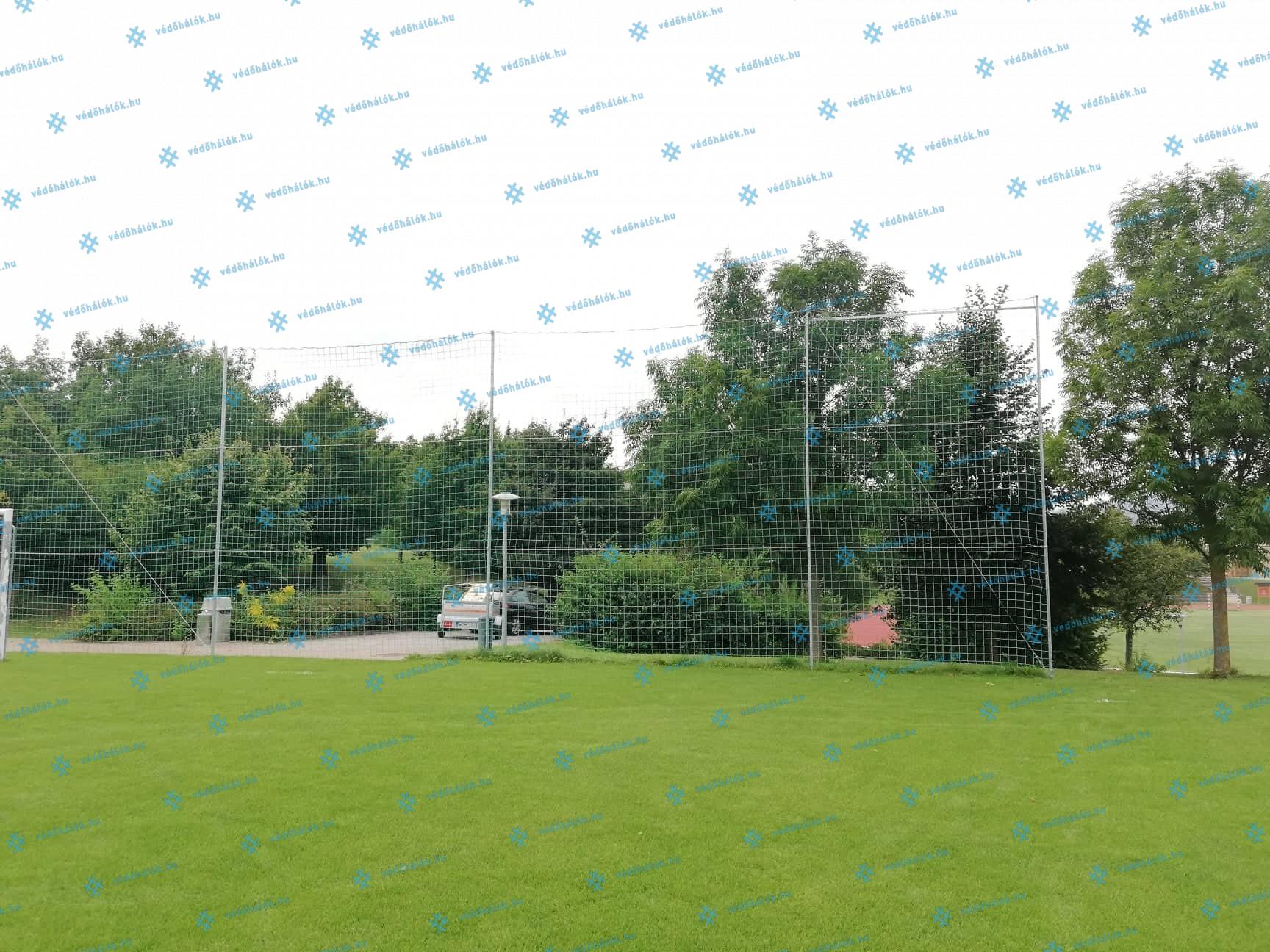 Az iskola területén belül a diszkoszvető háló mellett egy labdafogó hálót is telepítettünk, a futball pályáról kirúgott ill. kipattanó labdák megfogására. A labdafogó hálókat és oszlopokat szintén egyedi méretre gyártottuk, 4 m magasságban és 30 m hosszban.