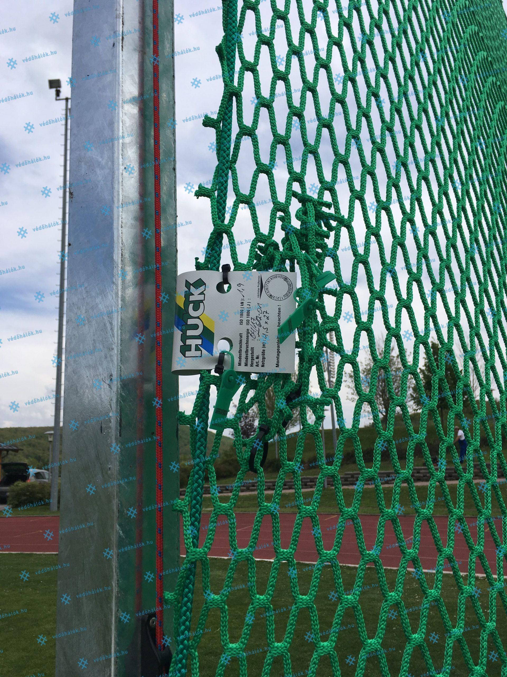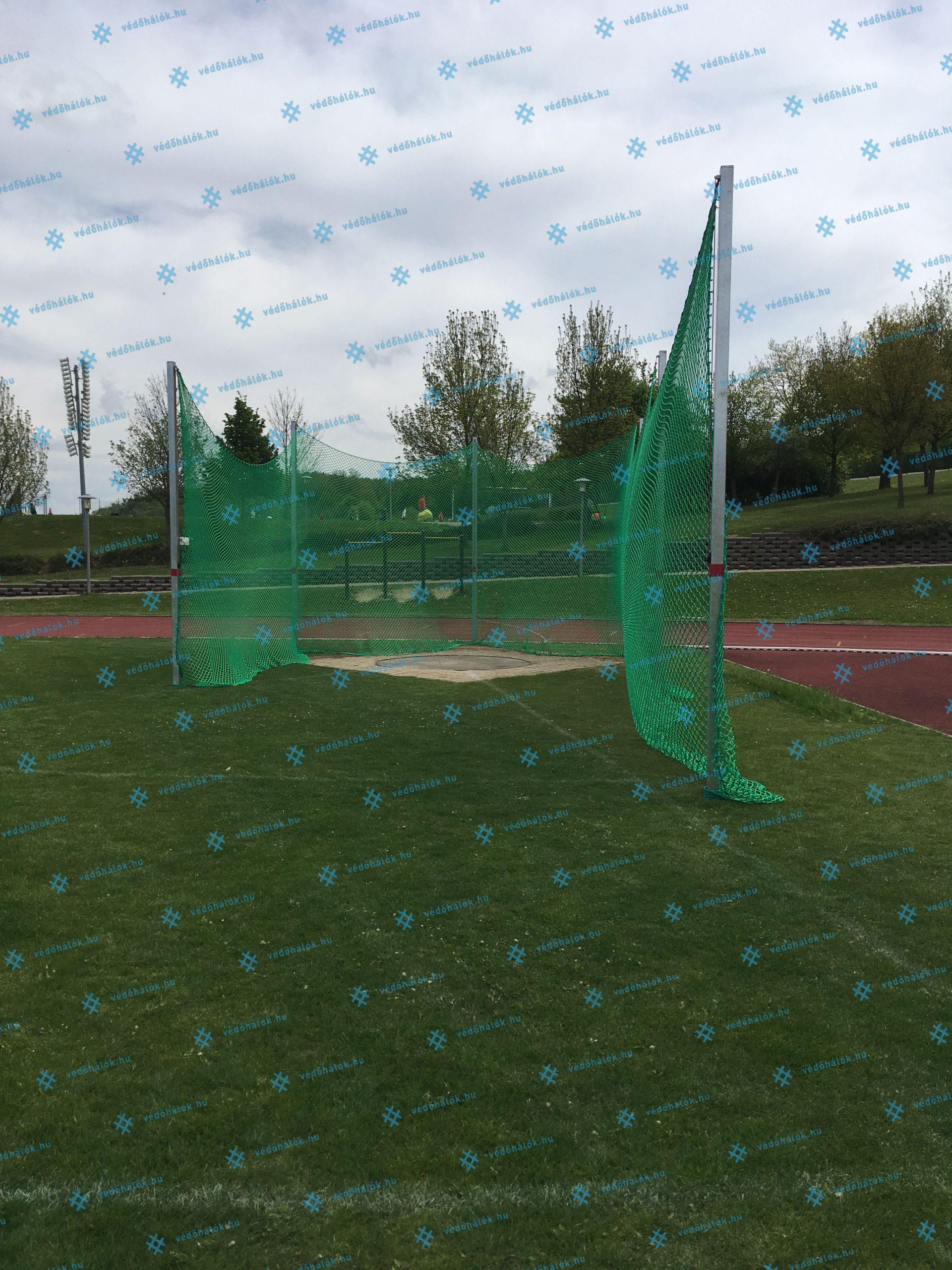 Kitűnő megoldást nyújt erre a feladatra a magas minőségű, német HUCK kalapácsvető és diszkoszvető hálónk, mely csomómentes gépi kötésű, polypropylen anyagból készül, UV stabil és ellenáll minden időjárási körülménynek. A háló 5 mm vastag PP anyagból készül, 45 x 45 mm-es osztással. A hálót tartó oszlopokat illetve a hálót magát is egyedi méretre készítettük, és szereltük fel a dobókör köré.