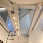 Az egyedi beltéri design kialakítása mellett, a terek biztonságossá tételének a kialakítása is fontos szempont volt. Egy magán lakás legfelső szintjén található, tetőtéri részbe szereltünk fel vízszintesen 5 mm vastag, 45 x 45 mm lyukosztású, fehér színű munkavédelmi hálókat. A függőleges hálók tereket választanak el egymástól, és védenek a leesés, kiesés ellen. Ezek a hálók 3 mm vastag, 45 x 45 mm lyukosztású hálók. Ezekből háromszög és kör alakzat is készült.