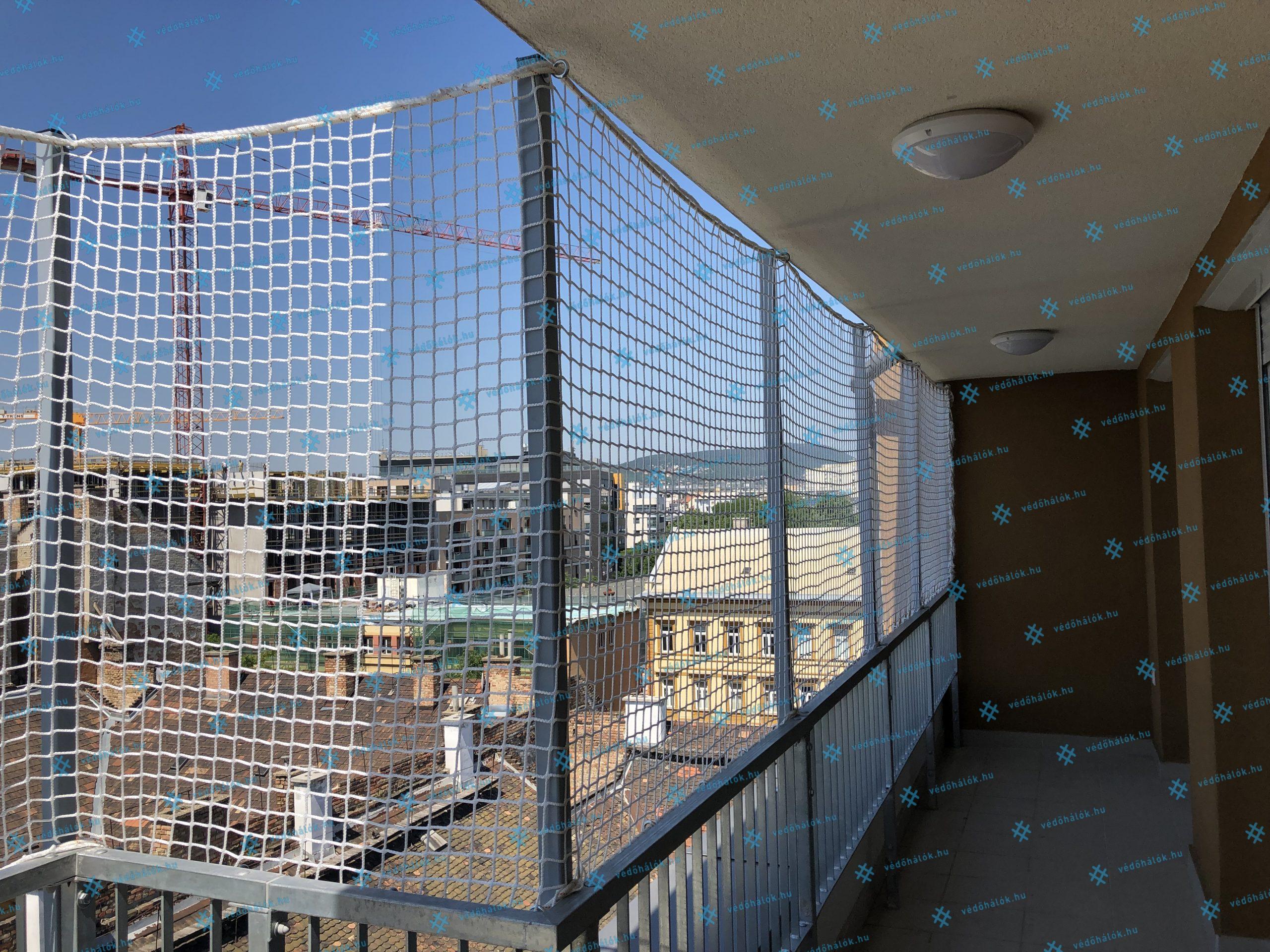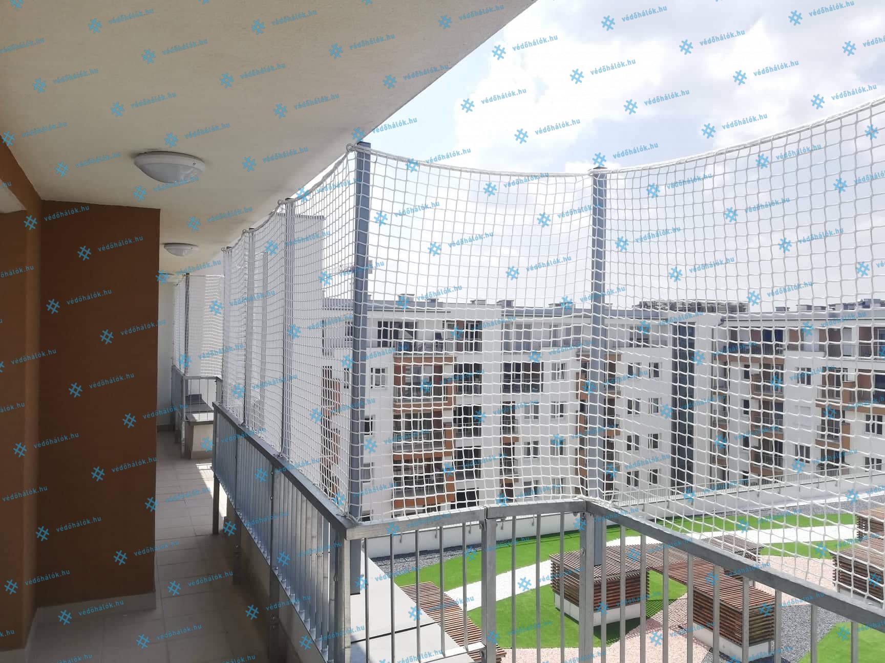 Ebben a projektben egy magán lakásnál teljesítettünk különleges, egyedi igényeket, amikor a korlát magasításával, méretre gyártott zártszelvényeket, méretre készített, 3 mm vastag PP hálóval együtt szereltünk fel. A biztonsági háló célja elsősorban az, hogy megvédje a gyermekeket attól, hogy kiessenek a folyosóról vagy áthajoljanak a korláton.