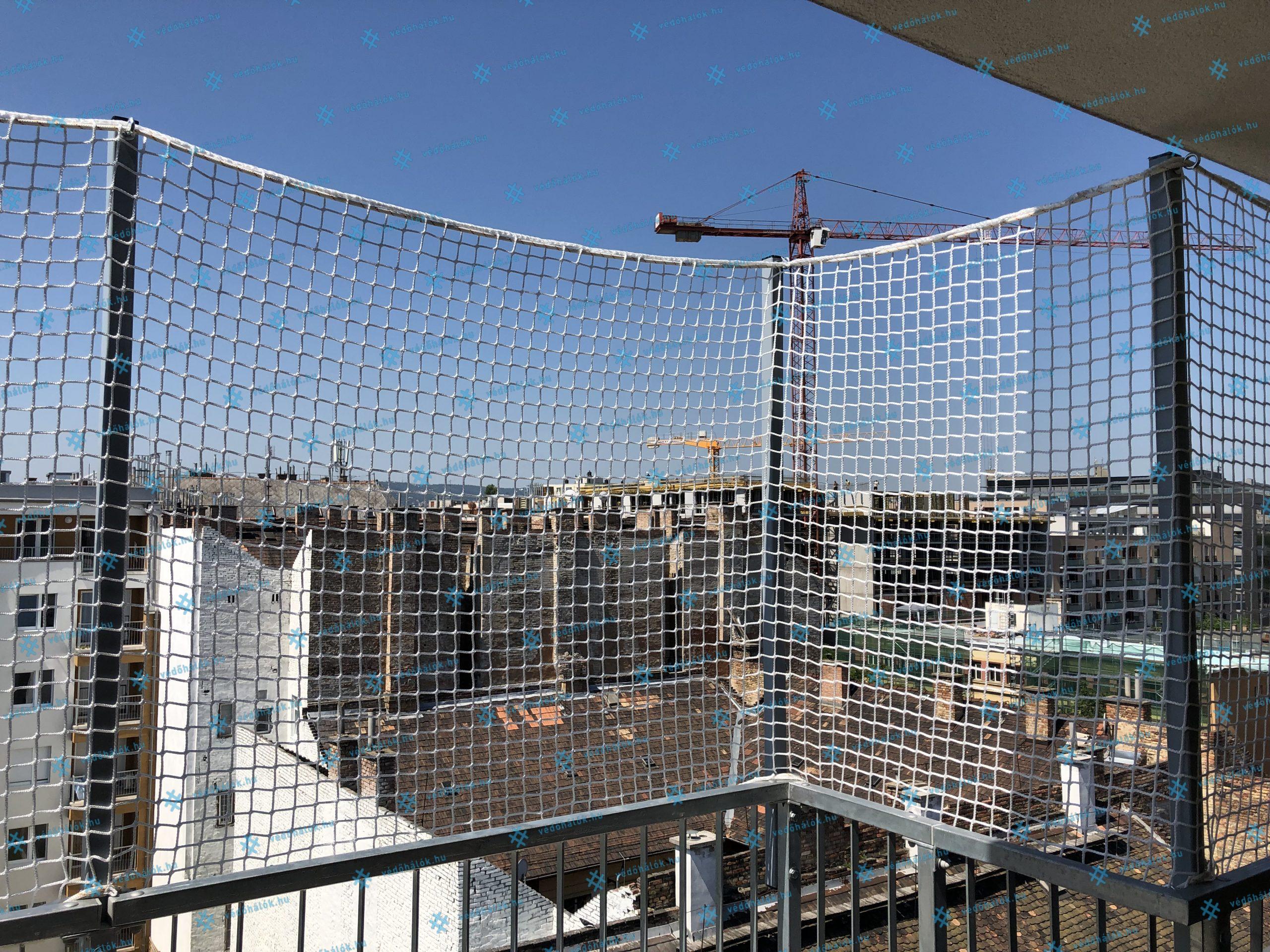 Erkélyre telepített védőháló egy magánlakásban