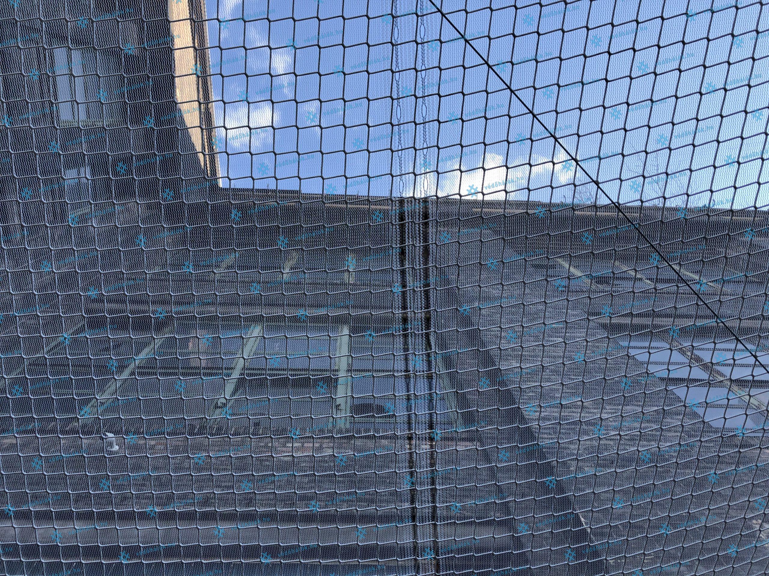 Kombinált munkavédelmi hálónk fő funkciója ebben az esetben, a személy védelem volt. A háló a vízszintes kifeszítéssel megvédi a területen dolgozókat az építkezés közben, esetlegesen leeső törmelékektől. Az alsó háló polyproplenből készült, ez fogja fel a nagyobb leeső darabokat. Ez összedolgozásra került egy feltét hálóval, ami a törmelék és porfogó védőháló szerepét tölti be.