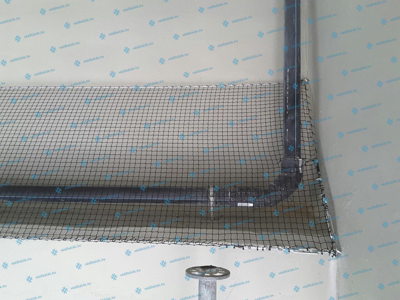 Egyedi méretre készített védőháló, 1 mm vastag, PP anyagból, 20 x 20 mm, 30 x 30 mm és 50 x 50 mm kötéstávolsággal. Keretszegés nélkül.