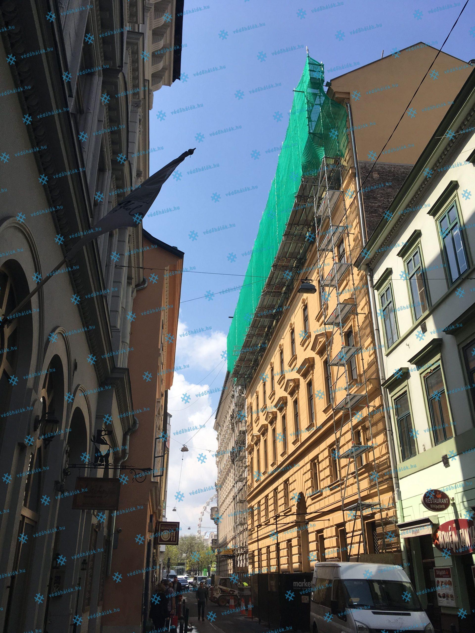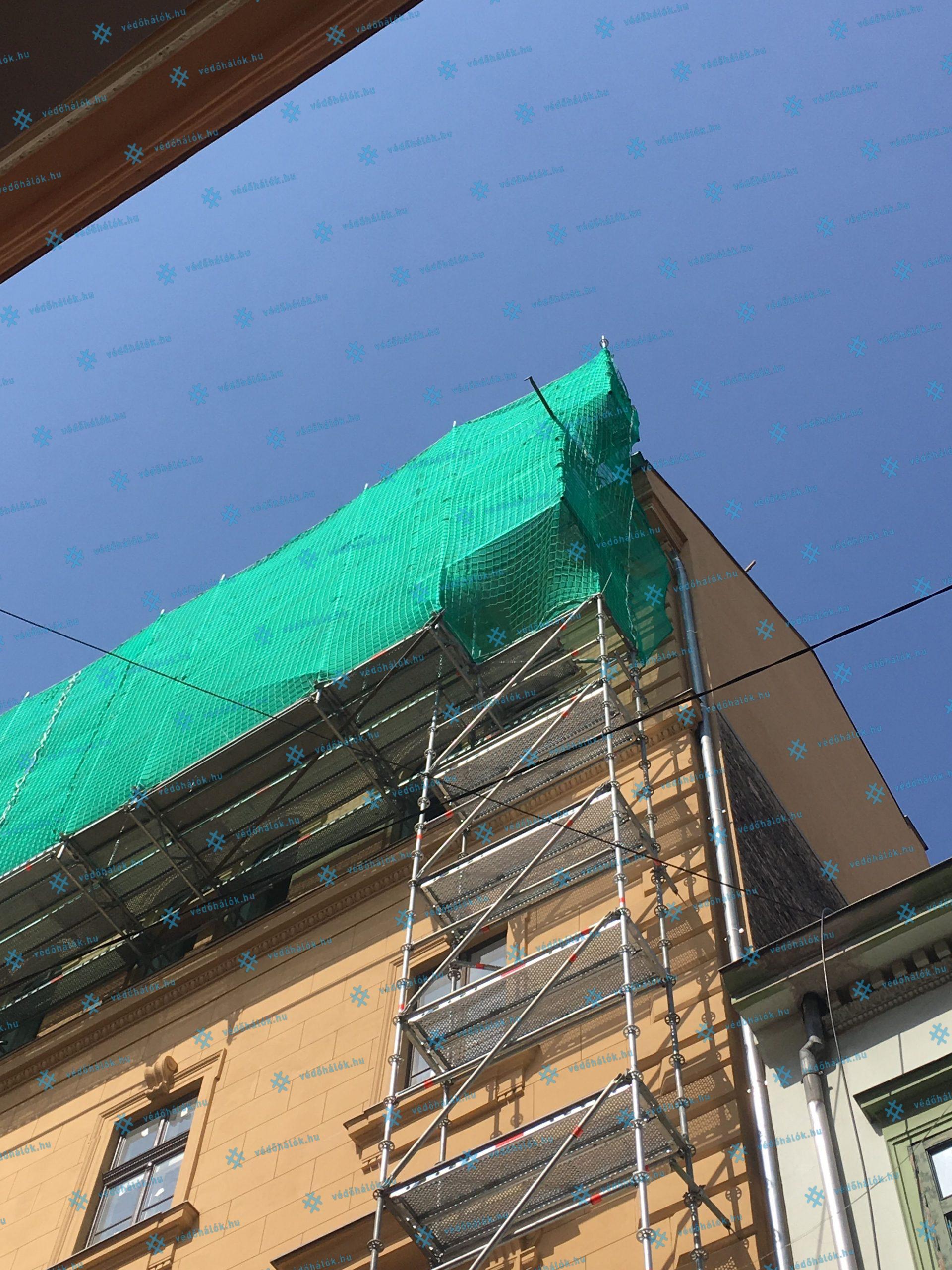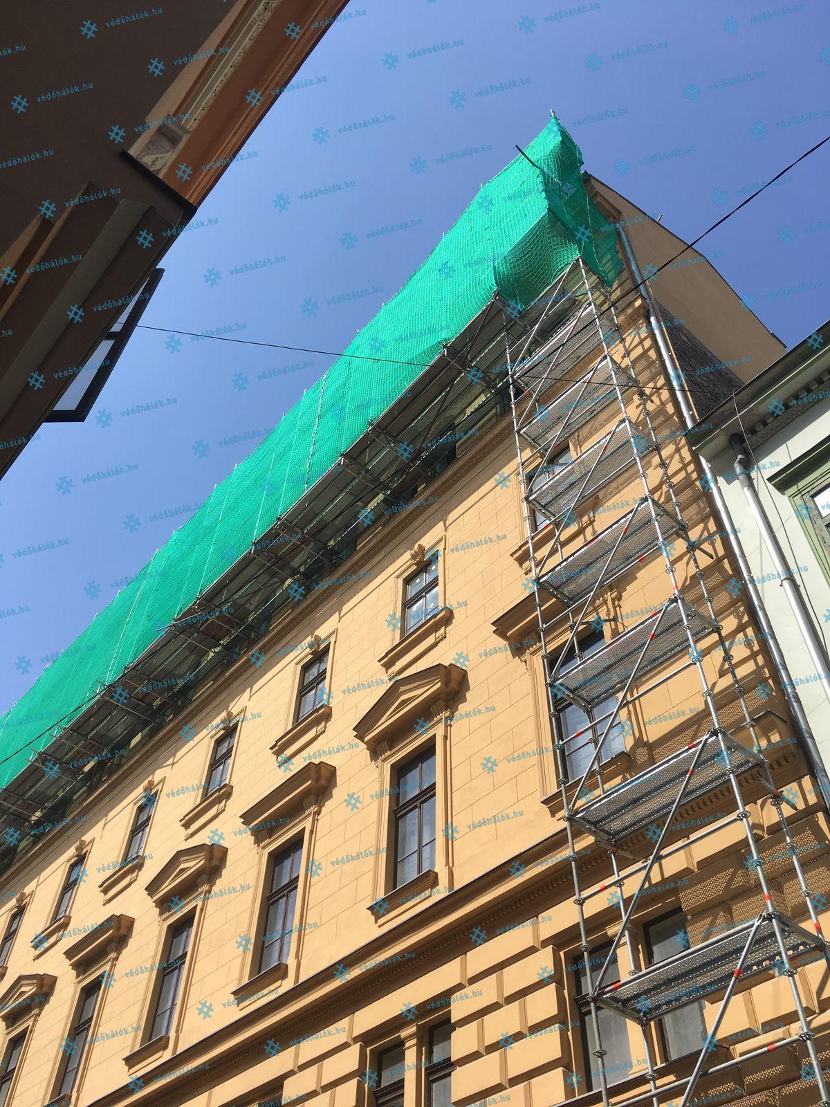 Feladatunk az építkezésen a leesés elleni személyvédelem, valamint a lehulló törmelék és por elleni védelem voltak. Ezt két rétegű kombinált munkavédelmi hálóval oldottuk meg, amelynek kivitelezésében vettünk részt.