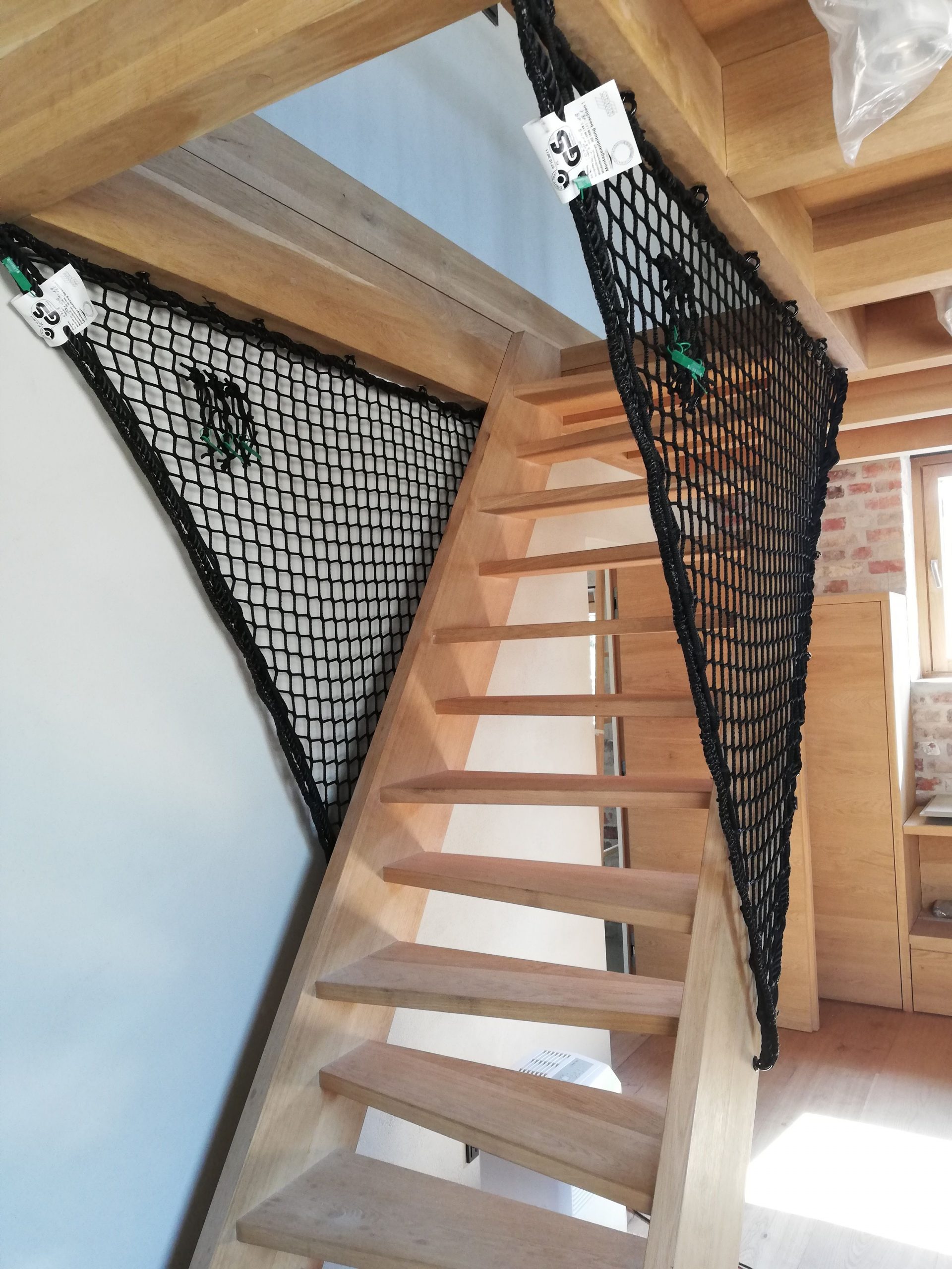 Különböző pihenő hálókat gyarkan szerelünk fel magánházakba, így egyedi design megoldásokat, méreteket és formákat alakíthatunk ki, miközben speciális igényeknek teszünk eleget. Ezekben a hálókban használóik kényelmesen olvashatnak, pihenhetnek. A képen látható pihenőháló esetében a megrendelő kérésére és a belsőépítésszel egyeztetve teljesen fekete színű hálót gyártottunk. Különleges módon került elhelyezésre a falon, a design szerint felfut a galéria szélétől kezdve. A lépcsőnél is követi a kialakított stílust, itt korlátot helyettesít.