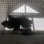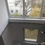 Egyedi méretre készített védőhálók, 5 mm vastag PP anyagból, 45 x 45 mm osztással, gépi szegéssel és extra nagy teherbírású keretkötéllel.