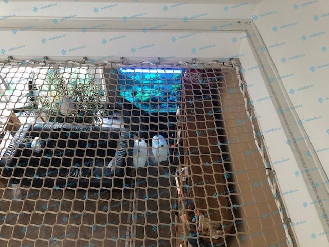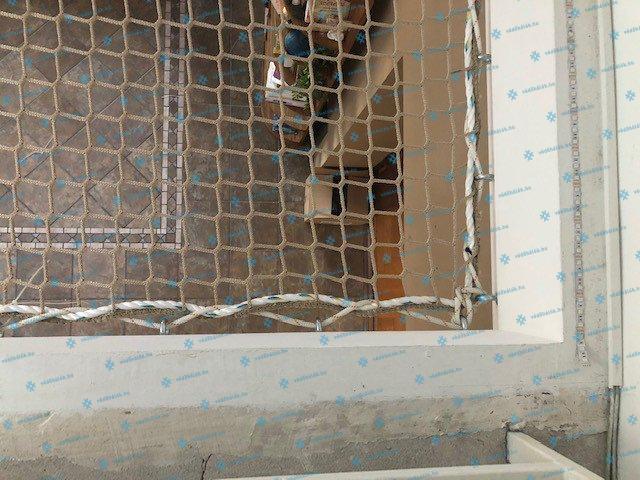 Itt a megrendelő bézs színű hálót kért a földszint és az első emelet közötti üres térbe, hogy hasznossá tegye ezt a területet. Végül egy négyzetes formát alakítottunk ki, szereltünk fel EN 1263-1 szabványnak megfelelő munkavédelmi hálónkból, amely 5 mm vastag, 45 x 45 mm osztással, gépi szegéssel készül, nagy teherbírású keretkötéllel.