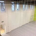 Labdafogó hálók felszerelésére, valamint kapuháló telepítésére kaptunk felkérést a Rózsa utca 50. szám alatt található sportközpontban. Ezek UV stabil polypropylen (PP) vagy polyester (PE) anyagból készülnek, egyedi méretben, gépi kötéssel, így nem foszlik szét a széleknél, továbbá a szegés jobb tartást is ad. Védőhálóink ebben az esetben az ablakokat, a mennyezeti lámpákat és hősugárzókat óvják ezen a helyszínen, továbbá megakadályozzák, hogy a labdák a pályáról kimenjenek.