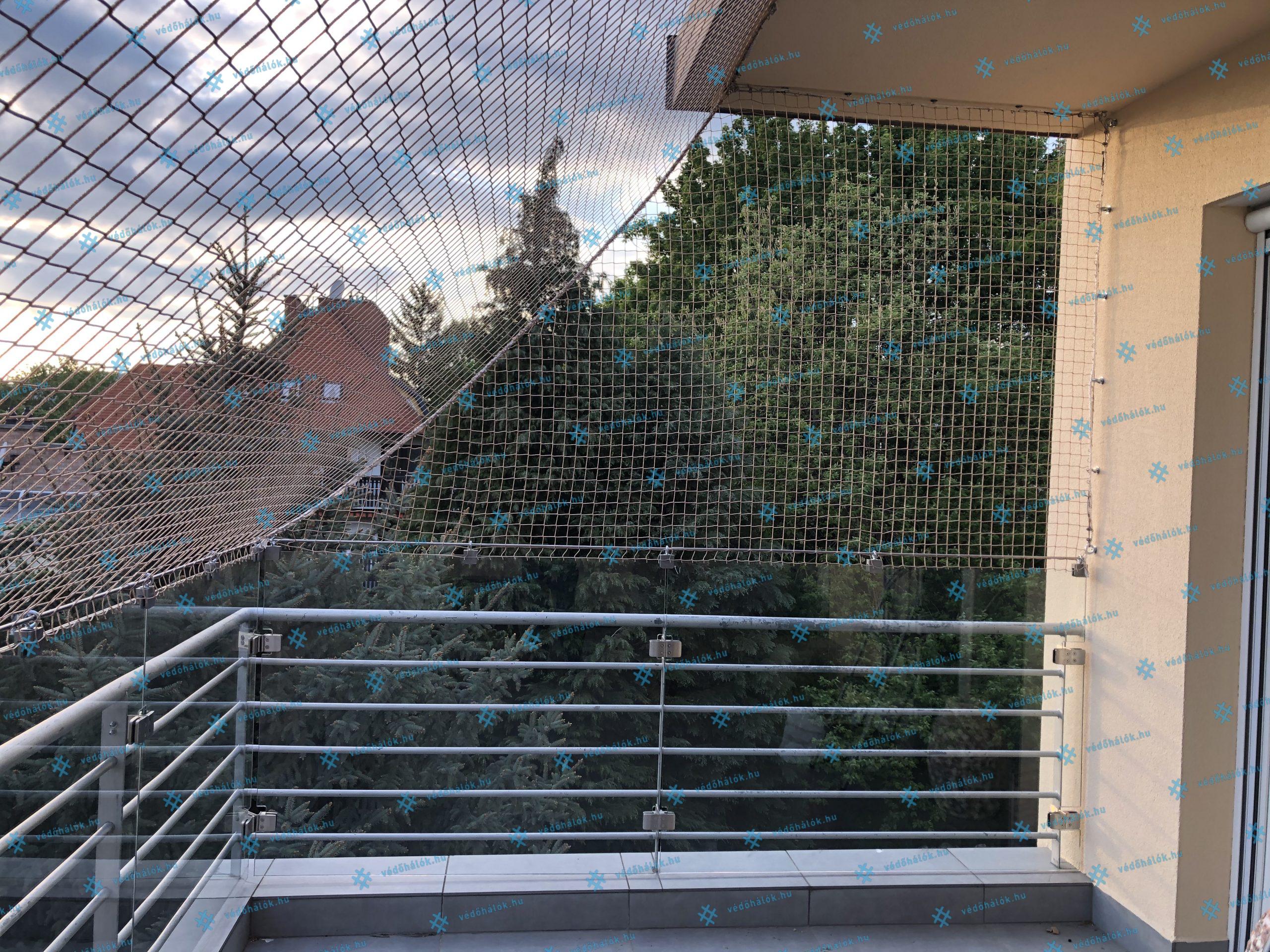 Ebben az esetben a védőháló funkciója az, hogy a megrendelő macskái szabadon mozoghassanak az erkélyen, anélkül, hogy kiesnének. Ráadásul az állatok szomszédolását is megakadályozzák, miközben a gazdiknak sem kell lemondaniuk a kilátásról. A hálókat mi szereltük.