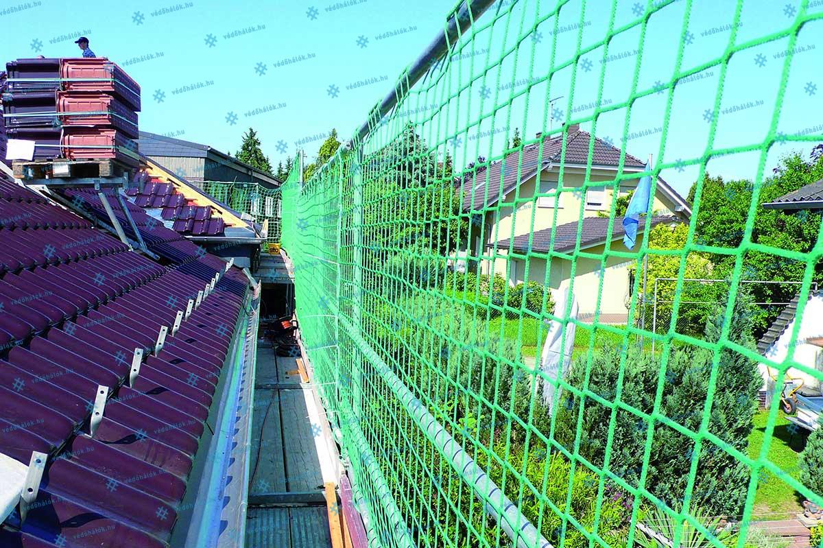 Az állványzathoz rögzített védőháló az oldalirányú kiesést akadályozza meg. A személyvédelmi funkció mellett az esetlegesen leeső szerszámokat vagy kisgépeket is felfogja, ezáltal védi nemcsak a dolgozókat, de az utcai járókelőket is.