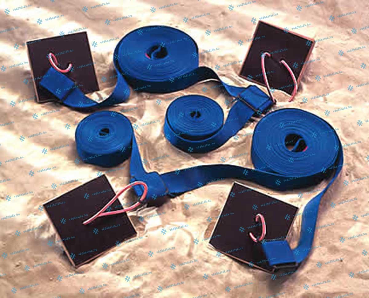Strand kézilabda pálya kijelöléséhez szükséges pályavonal garnitúra, kék színben. A garnitúra az alábbi elemeket tartalmazza.