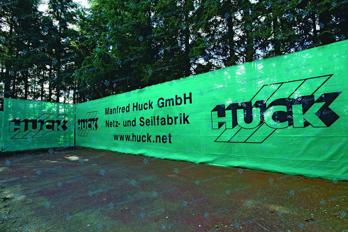 Egyedi méretre gyártott, kiváló német minőségű HUCK szélfogó, takaró háttérháló teniszpályára. Légáteresztő, UV stabil, 200 g/m2 sűrűségű polyethylen anyagból készül. Árnyékoló és szélfogó hálóként is használják. A háló a szélein körben szegett, 50 cm-enként fém ringlikkel van ellátva.